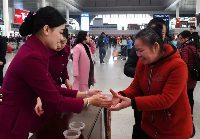 候车厅送上的一杯热饮,
