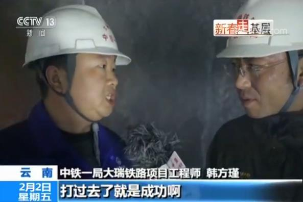 中铁一局大瑞铁路项目工程师 韩方瑾:打过去了就是成功呀。我们想了很多办法,做了很多工作,我们没有发生人员伤亡,我们质量也能得到保证,我们过去了,这也算是成功呀。