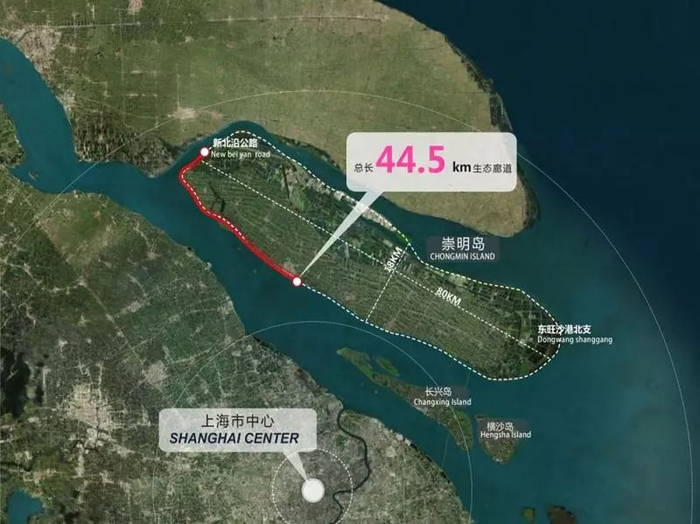 崇明环岛景观道一期工程范围。