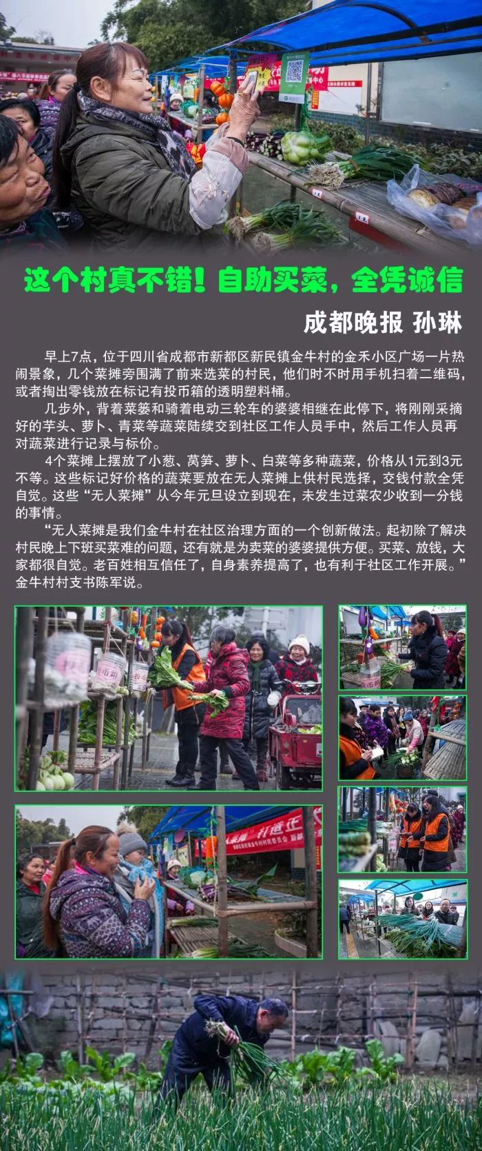 “无人菜摊是我们金牛村在社区治理方面的一个创新做法。起初除了解决村民晚上下班买菜难的问题,还有就是为卖菜的婆婆提供方便。买菜、放钱,大家都很自觉。老百姓相互信任了,自身素养提高了,也有利于社区工作开展。”金牛村村支书陈军说。