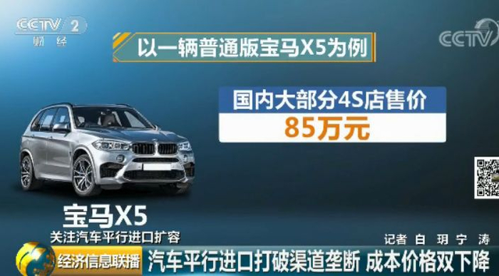 对于准备买进口车的人来说,这真是一个好消息。但很多人想知道,平行进口车到底比普通进口车便宜多少钱?据央视财经记者了解,以一辆普通版宝马X5为例,国内大部分4S店售价为85万元,而在天津保税区,相似款平行进口宝马X5售价为65万元左右。直接省下20万!