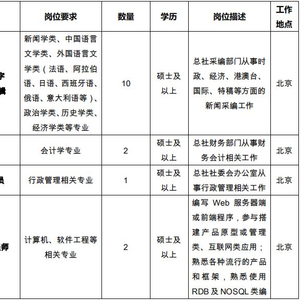 4、新闻采编岗位非外语专业需取得国家英语六级证书或达到相应的分数要求;