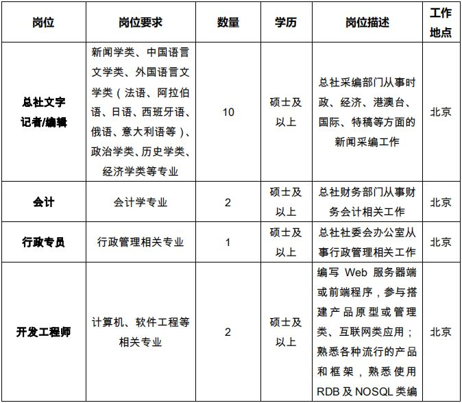 中国新闻社 2018 年校园招聘启事