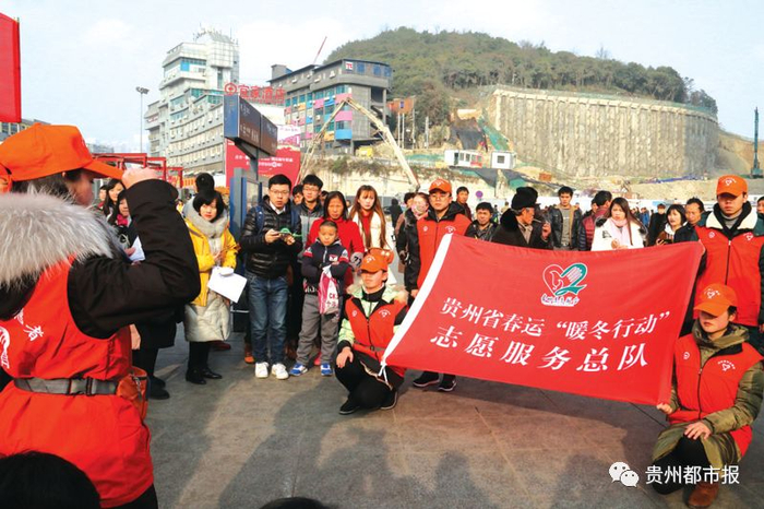 2月1日,贵州省春运志愿服务“暖冬行动”正式拉开帷幕,由贵州共青团招募的4200名青年志愿者上岗为贵州春运展开为期40天的服务。