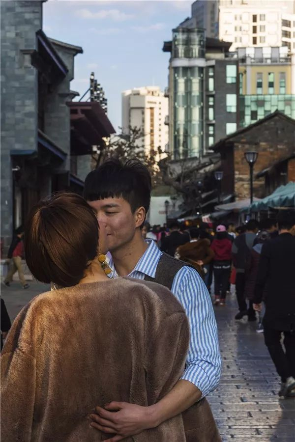 一对情侣在景星街拥吻
