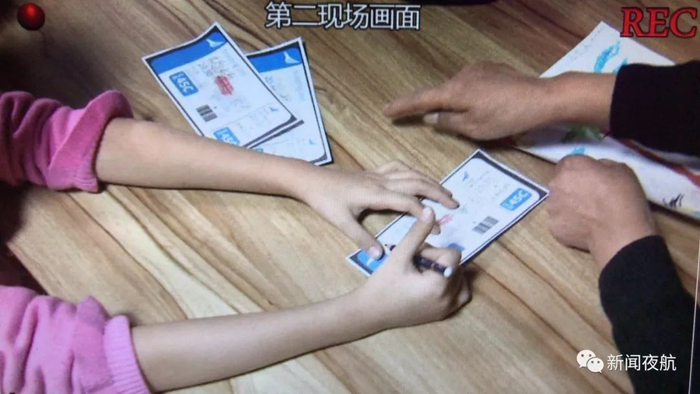 看到孩子做出选择后,在第二现场,曾繁楷的妈妈刘轩示意记者告诉曾繁楷,如果爸爸有时间,想看看他的反应。听说爸爸有时间,曾繁楷开始修改机票上的名字,把妈妈的名字改成了爸爸。