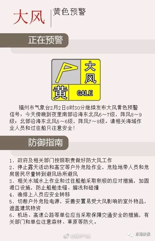 【福州市大风黄色预警信号】: