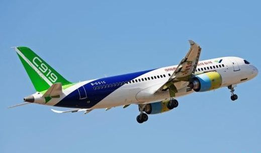 2017年5月5日,大型客机C919从上海浦东机场的跑道上滑跑而起,成功首飞。