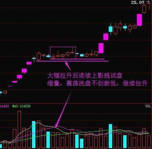 (2)二浪底一大阳后缩量小阳线,可以是一根或两根或更多。
