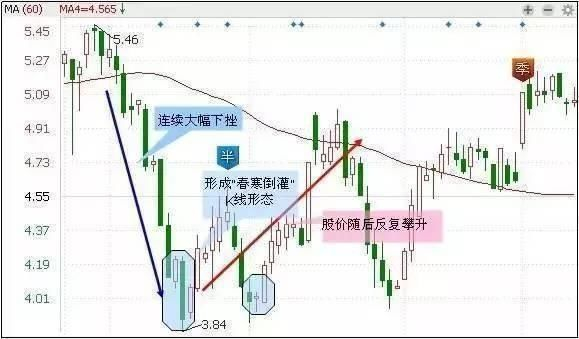 该K线形态是指股价持续下挫,在低档接连收出四五根中大阴线后出现一根阳线,但次日马上被一根中大阴线所吞没,但5日乖离率出现背离走势,此种走势暗示股价已至底部,第二日若高开高走则是低吸的良机。