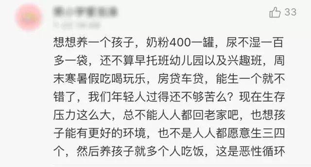 网友说,不是双职工养不了孩子,双职工带不了孩子,保姆请不起,待业待不起,你说咋办?总不能人人都回老家吧。