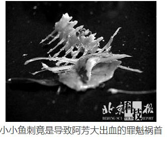 一个尖锐的小东西引起了医生的注意,难道这就是给阿芳带来致命灾难的元凶?原来就在阿芳发病前的一周,阿芳的母亲给阿芳做她平时最喜欢吃的“富贵鱼”。没想到吃饭的时候,阿芳被鱼刺卡住了。