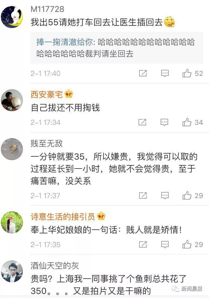 取鱼刺花45元,女生吐槽医院太贵太坑,网友:???我出55元你让医生插回去