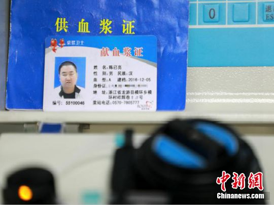 2016年12月1日,龙游单采血浆站正式成立,得知这个情况后,当时还在丽水推拿店工作的陈已亮请了假回来献血浆。“没办法,我们这样的人不能献血,但血浆还是可以的。”