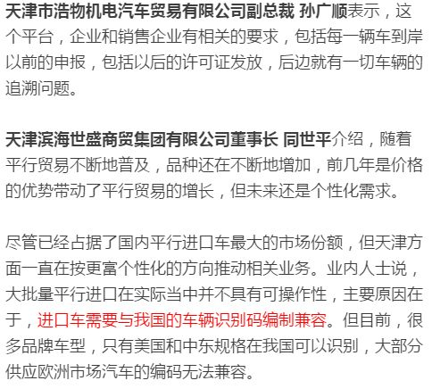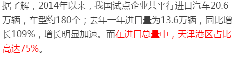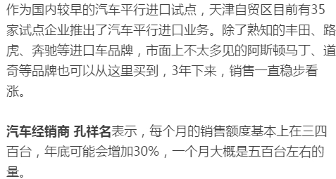 汽车经销商 孔祥名表示,天津属于全国第一大的平行进口车集散地,占70%以上的份额,因为集散地价格更加便宜,比其他地方最少要可能便宜10%以上。
