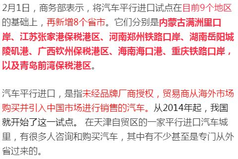 我国汽车平行进口试点新增8个省市 海南海口在列