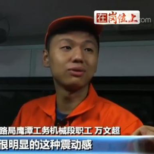 南昌铁路局鹰潭工务机械段机械维修二车间 万文超:你看,很明显的震动感,我们这是速度慢,如果是动车过来的话,震动感很强烈,乘客的舒适度会很差。我们钢轨刚打磨完的时候是很平顺的,轮对跟钢轨之间不会有任何的声音发出来。这种声音是我们以10公里的时速在运行,你换成了两三百公里时速的话,震动会无限放大,可能人坐在椅子上都坐不稳。