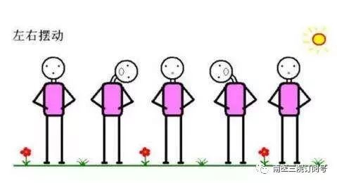 6.摇头晃脑。左右、前后,转头5次,再反方向旋转5次。