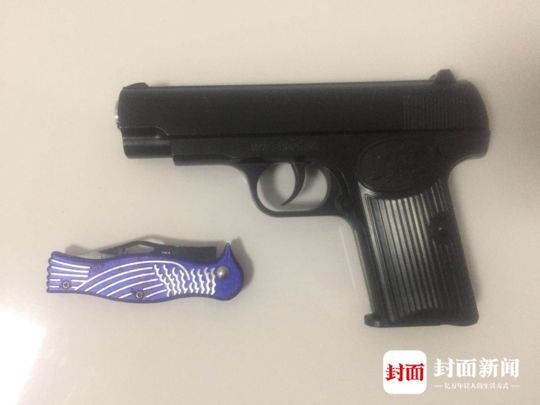 随后,民警从男子身上搜出了玩具手枪和遗书。