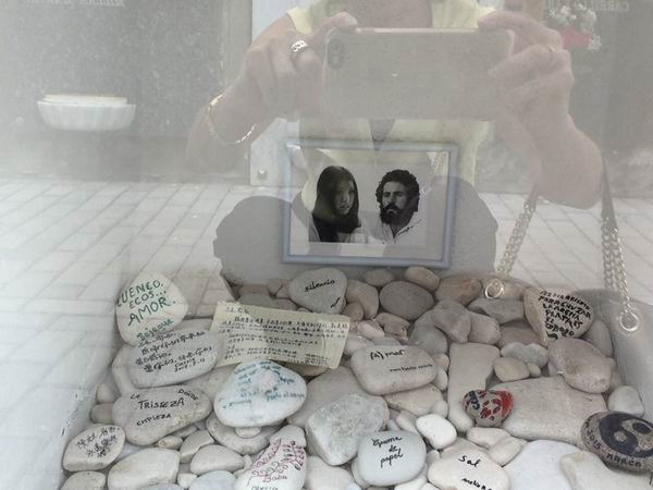 南达告诉我:听说有不少中国访客去上坟,放下写了祝祷字句的石头;附近的店家还售卖有他俩照片的明信片,甚至还有一本关于他俩的西班牙文小书“橄榄树与梅树花”。简直成了当地一个吸引游客的看点。