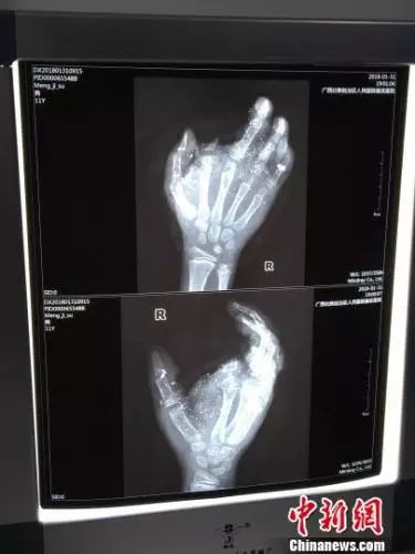 图为小明受伤的手掌骨骼图。 陈秋霞 摄