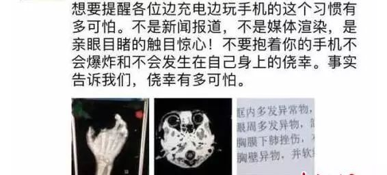 2月1日上午,一张手机爆炸八岁小孩手掌被炸烂的朋友圈截图在微信群疯传,警示大家不要边充电边玩手机,该微信用户提到一起发生在自己身边的案例,让人看来触目惊心。这条朋友圈的图文截图虽然与事实有部分出入,但这种每天在身边的致命危险确实应该引起大家的重视。