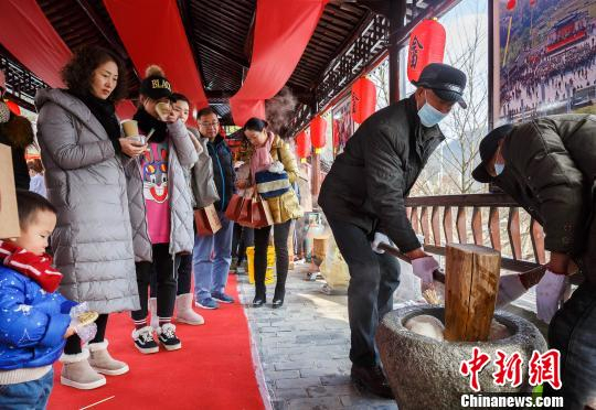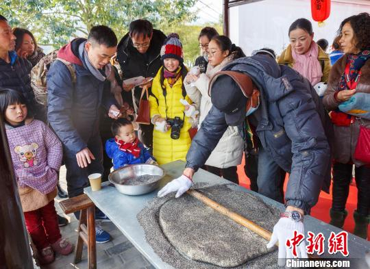 中新网湖州2月3日电(记者 胡丰盛 通讯员 安宣 张卉)看非遗、购年货、送春联、赏畲舞……2月3日,浙江安吉迎新春系列文化活动中,全国少数民族特色村寨——章村镇郎村“山哈客人 畲村喊你来过年”活动吸引众多游客前来体验少数民族文化。