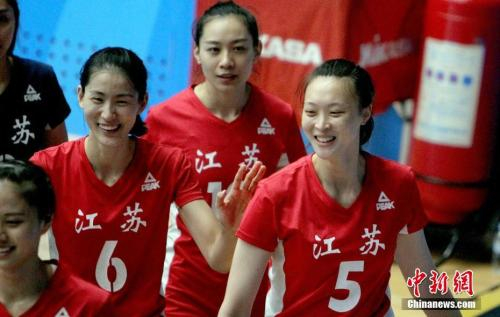 资料图:赛后惠若琪(5号)和队友笑容满面走出赛场。 中新社记者 张道正 摄