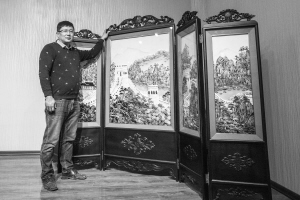 金吉与他的贝壳画作品 ■本组图片由华商晨报记者 马龙丹 摄 个人简介 金吉,1970年10月出生于大连,1988年进入大连旅游工艺品总厂,从此师从父亲中国工艺美术大师金阿山从事贝雕事业,至今已30年。从艺期间,刻苦学习不断开拓进取,特别是近年来随其父亲在贝雕的新工艺新技术开发方面推出了“珍贝艺术”新理念。 2014年,与金阿山大师合作的作品《麒麟》在第十五届中国工艺美术大师精品博览会获金奖及艾琳奖,这也是辽宁省艺术作品目前获得的最高奖项。 2017年金吉被授予辽宁省工艺美术大师称号。 珍贝艺术貔貅 “十三四岁就开始给父亲打下手,那时父亲常把在厂子没做完的贝雕带回家做”,对金吉来说子承父业是件很自然的事。 时光拉着金吉从青葱少年,进入不惑,耳濡目染的他转眼间已在贝雕堆中打磨了30年。父亲金阿山是中国工艺美术大师,中国贝雕界扛鼎之人,这让他虽有学习的便利,但父亲对他研习贝雕技艺的苛刻要求,则让金吉时刻紧绷神经,“父亲是国大师,对我而言是压力亦是挑战。” 子承父业从事贝雕制作 金吉是真真切切在贝雕世界里长大的,“幼儿园的时候,爸妈加班就会把我带到厂里。”在贝雕厂小不点的金吉见识了各种各样的贝壳,看见零散的、大大小小的各式贝壳在爸爸妈妈、叔叔阿姨们手里变成了仙鹤延年、变成牡丹花开…… “小时候贝壳就是我的玩具,我在上面画画。”在大一点金吉成了父亲的帮手,“有时爸爸会在家里做贝雕,贝壳形状是磨好的,我就在爸爸指导下帮着往上贴点叶子、树枝这些简单的。”金吉形容了当时心态,“当时十三四岁,就是觉得好玩。” 18岁时,金吉和父亲成了同事,亦是师徒,“进入大连旅游工艺品总厂,正式开始从事贝雕制作。” 做贝雕看起来轻松,实际累、枯燥。磨件的时候,在机台前一坐就是一整天。磨件整个过程基本都在重复一套动作,乏味,但还必须要保持一定的速度。打磨完需要的部件后,要将它们拼接起来,这一步才是最难的。如果搭配不上,还需要重新磨制”,那段时光并不轻松。 一帆风顺,是金吉独立完成的第一幅作品,“从构思到完成,完全由我一人掌控”。金吉说这让他有了一种成就感,也第一次想到了传承问题,“自己动手之后感觉到自己与父亲的巨大差距,我想不仅自己要提高,也要把父亲技艺传承下去,这是我的责任。” “在传承古法的同时,还需不断创新” 2017年整个春节假期他把自己关在工作室里,7天后大型贝雕屏风《花开富贵》完成,如今无论对金阿山还是金吉来说,贝雕早已不是他们赖以谋生的手段,“我们不图什么,许多贝雕做好了不是为了卖,父亲说这些都是宝贝。” 贝雕技艺集牙雕、玉雕、木雕、微雕、石雕等各种雕刻手法于一体,取绘画、书法、雕塑、篆刻等众家之长。优质的贝雕工艺品往往需要经过设计图稿、选料、粗坯处理、细坯处理、精雕细刻、打磨、抛光、立体塑形等十几道工序。 在工艺手法上,大连贝雕巧用贝壳的天然色和纹理形状精心雕琢,新颖构图,比如,将红口螺制作成花瓣,再用特殊的胶固定在泡沫塑料的底胚上面,等自然风干后,一朵栩栩如生的牡丹花就制作出来了。这些都要求贝雕作者既有丰富的知识,又有坐得住的定力,作为大连人,如何利用大连贝壳的特点打造大连贝雕艺术的标志性特色,一直以来是金吉潜心研究的课题。 在金吉看来,“贝雕技艺需传承古法与不断创新并行”,为此父子俩有争论。 争论的结果是,父子俩在贝雕的新工艺、新技术开发方面推出了“珍贝艺术”新理念,“所谓‘珍贝艺术’就是在贝壳原有基础上,镶嵌上绿松石、孔雀石、玛瑙等各种宝石及碧玉、翡翠、黄金,提高了贝雕档次的同时,使贝雕具有了很高的收藏价值。” “父亲的成就对我来说是高山仰止,如今的我还在半山腰。但贝雕是我一辈子的事业,在传承父亲技艺的同时,创作出有自己痕迹的作品。做父亲没做过的,创作现代题材作品,因为传统的已经被父亲做到了极致”,金吉正在构思全新的珍贝艺术品——鼎,“造型是立体的,主体构思已经完成。” 今年48岁的金吉保持着旺盛的工作力,属于他的未来充满无限可能。 华商晨报首席记者 段芳宇 |