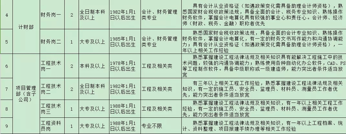 2、全日制大专及以上学历,工程造价、建筑工程、公路桥梁、市政园林等相关专业。