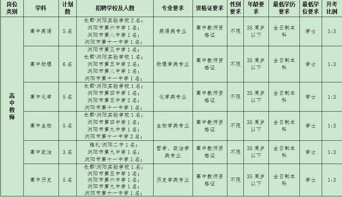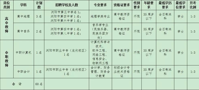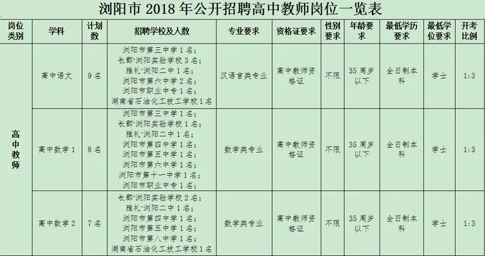 2018年湖南省长沙浏阳市高中教师招聘简章(60名)