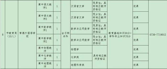 1、政策咨询电话:0736-7893118、7786126;招聘单位电话(详见附表);