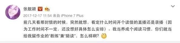 去年年底时,张靓颖收到过意大利歌迷寄来的英文信,她觉得传统的信件很有仪式感,能够从信件中感受到对方当时的状态。同时,她也觉得这是一种学习方式,毕竟在应用英语的能力上,如果没有语言环境的影响,会很容易退步。她便鼓励自己的粉丝们,可以多给她写英文信件,大家一起进步。