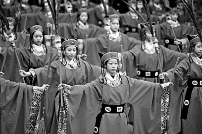 2017年9月28日,哈尔滨学生们穿上古装参加纪念孔子诞辰2568年活动。光明图片/视觉中国