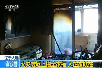 照片的拍摄者是大连人名叫姜峰,照片拍摄于1月31日,照片中的人是自己的姑姑、姑父和表弟。当天上午9点左右,姑姑家中突然失火。他赶到现场帮助处理后续事宜。等众人赶到时,明火已经被消防扑灭,两室一厅的房子一片狼籍,所有家当基本化为废墟。