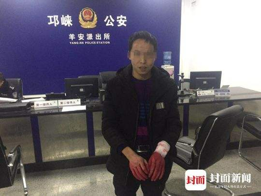 民警立马赶到现场,此时男子的左手通红,且染红了衣袖,右手正拿着5、6厘米的小刀,准备再次“割腕”,嘴里一直对女友说道:“你跟不跟我走嘛,我们出去摆一哈,不答应我就死这里……”
