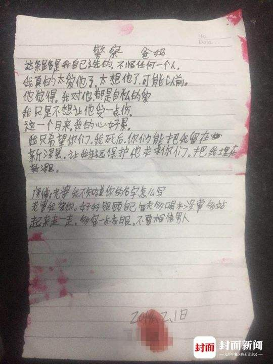 遗书文尾还写道: