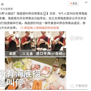 海底捞已紧急叫停“自带食材”服务。