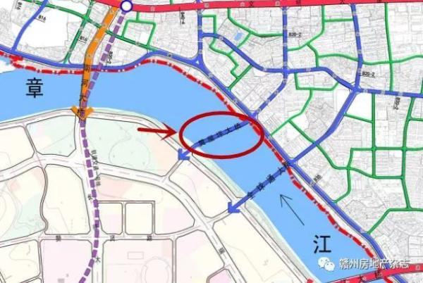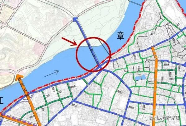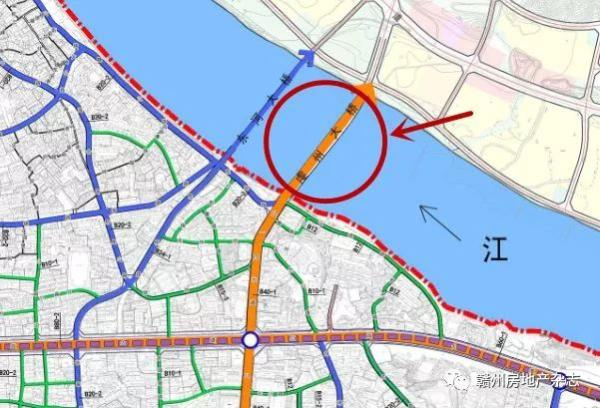 规划的虔州大桥,始于河套老城区八一四大道,止于水东片区水东大道。