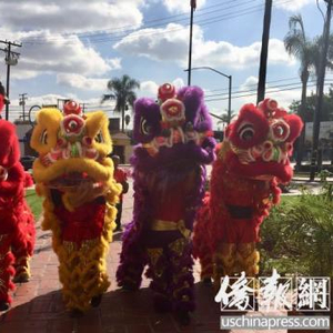 美国南加州舞狮表演。(美国《侨报》记者尚颖摄)