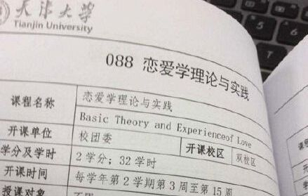 2016年起,天津大学《恋爱学理论与实践》开讲。据了解,课程由该校团委负责,组织者是学生社团“鹊桥会”;只要听够5次课,并在期末提交一篇不少于2000字相关主题的报告即可获得学分。