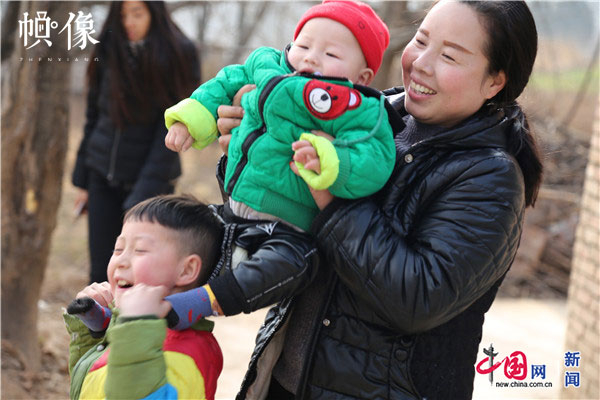 2018年1月22日,甘肃省陇南市西和县,听障儿童潘小明与哥哥和妈妈玩耍。中国网实习记者 李逸奇 摄