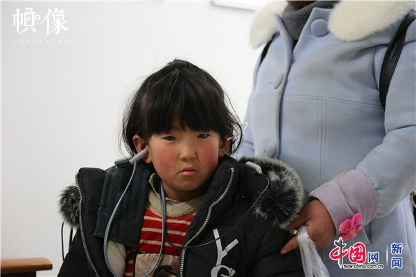 2018年1月21日,甘肃省陇南市西和县,正在进行检查的疑似听力障碍儿童。中国网实习记者 李逸奇 摄