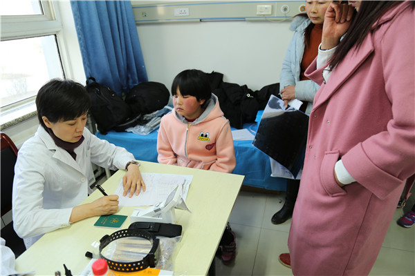 2018年1月21日,甘肃省陇南市西和县,首都医科大学附属北京儿童医院耳鼻咽喉头颈外科科主任、主任医师张杰为听力障碍儿童进行筛查。中国网实习记者 朱珊杉 摄