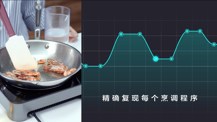 通过热敏电磁炉中微处理器配合温感系统实时感知温度,精准记录料理人行厨时每一步的火候,配合专业拍摄团队多机位全程录制,编制出清晰明确的烹饪指导视频,从备料到料理动作一应俱全;再经品控团队对菜品反复测试,确保出品稳定可靠,最终生成高标准智能食谱,从而完美复现名厨菜式的原汁原味。