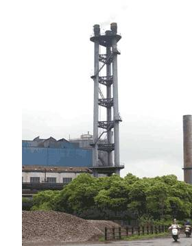 煤气放散塔的高度高于50米且点火放散。剩余煤气放散管应控制放散,其管口高度应高出周围建筑物,一般离地面不小于30米。