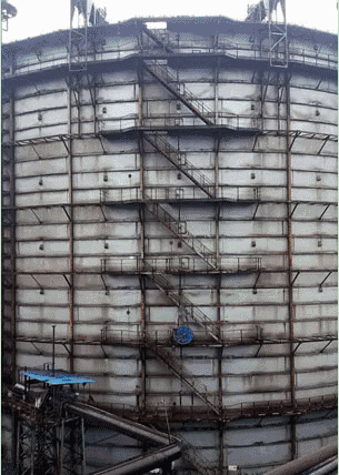 煤气柜不应建设在居民稠密区, 应远离大型建筑、仓库、通信和交通枢纽等重要设施, 并应布置在通风良好的地方。煤气柜周围应设有围墙, 消防车道和消防设施, 规定应设防雷装置。