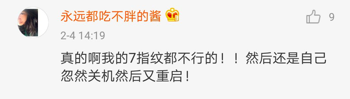除了“无服务”问题,还有用户表示,指纹解锁功能也不“灵”: