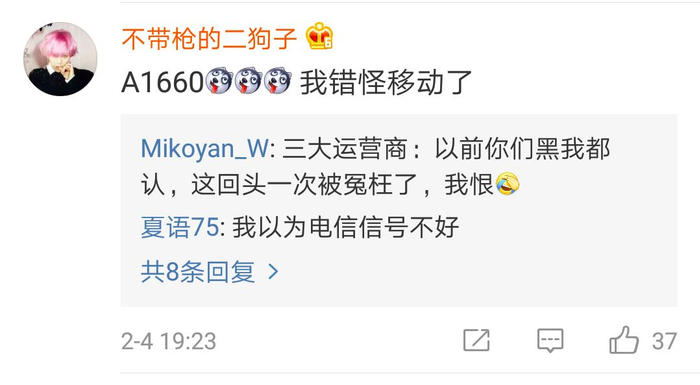 网友:运营商我错怪你了不少人查看了自己手机的型号后,表示“中奖”: