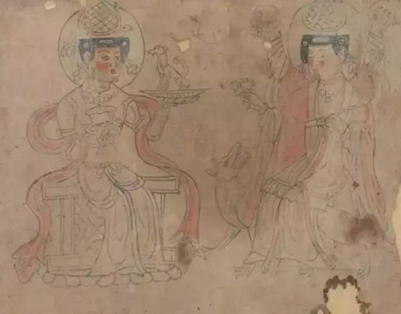 ▲饶宗颐在《敦煌白画》中提到的二女神像